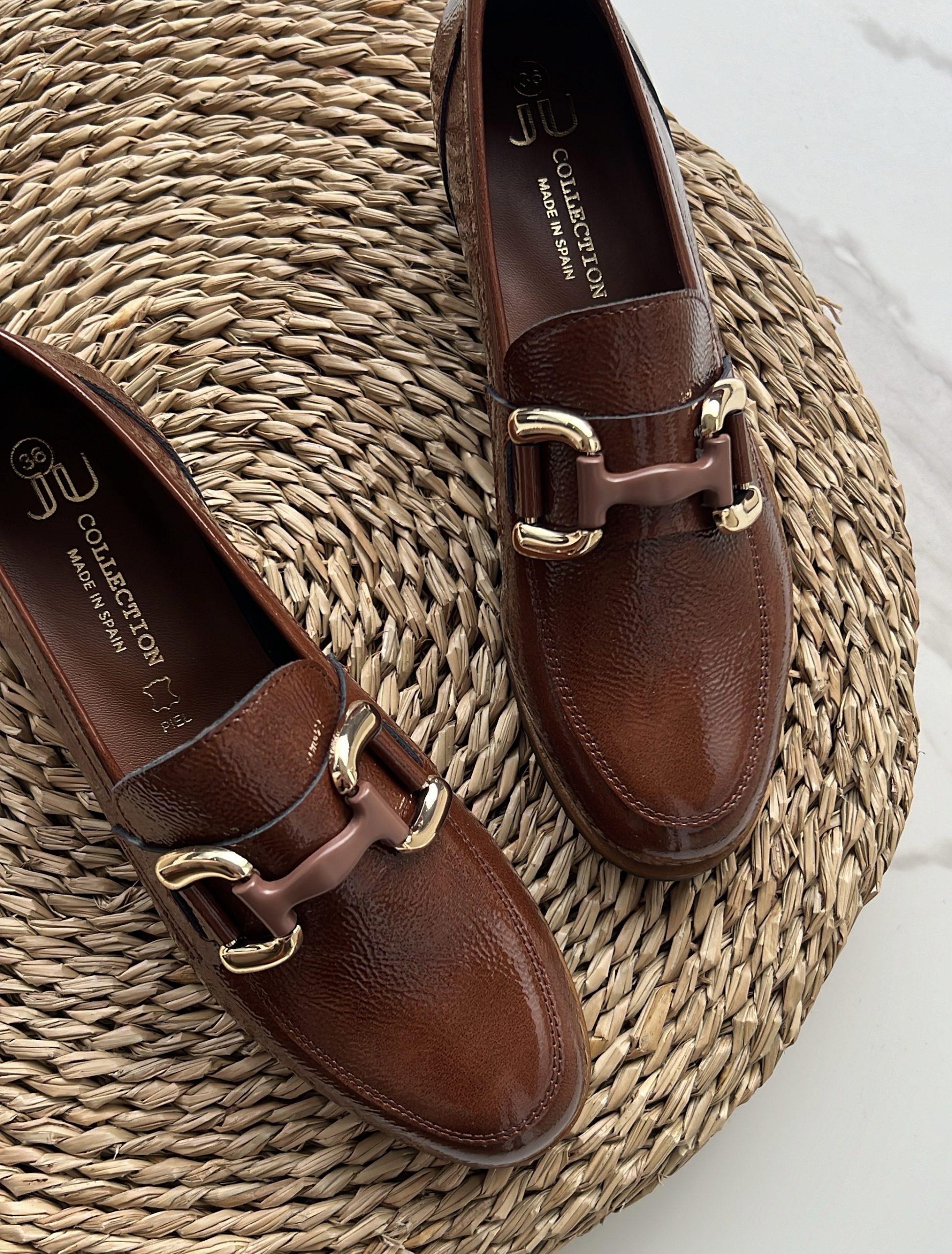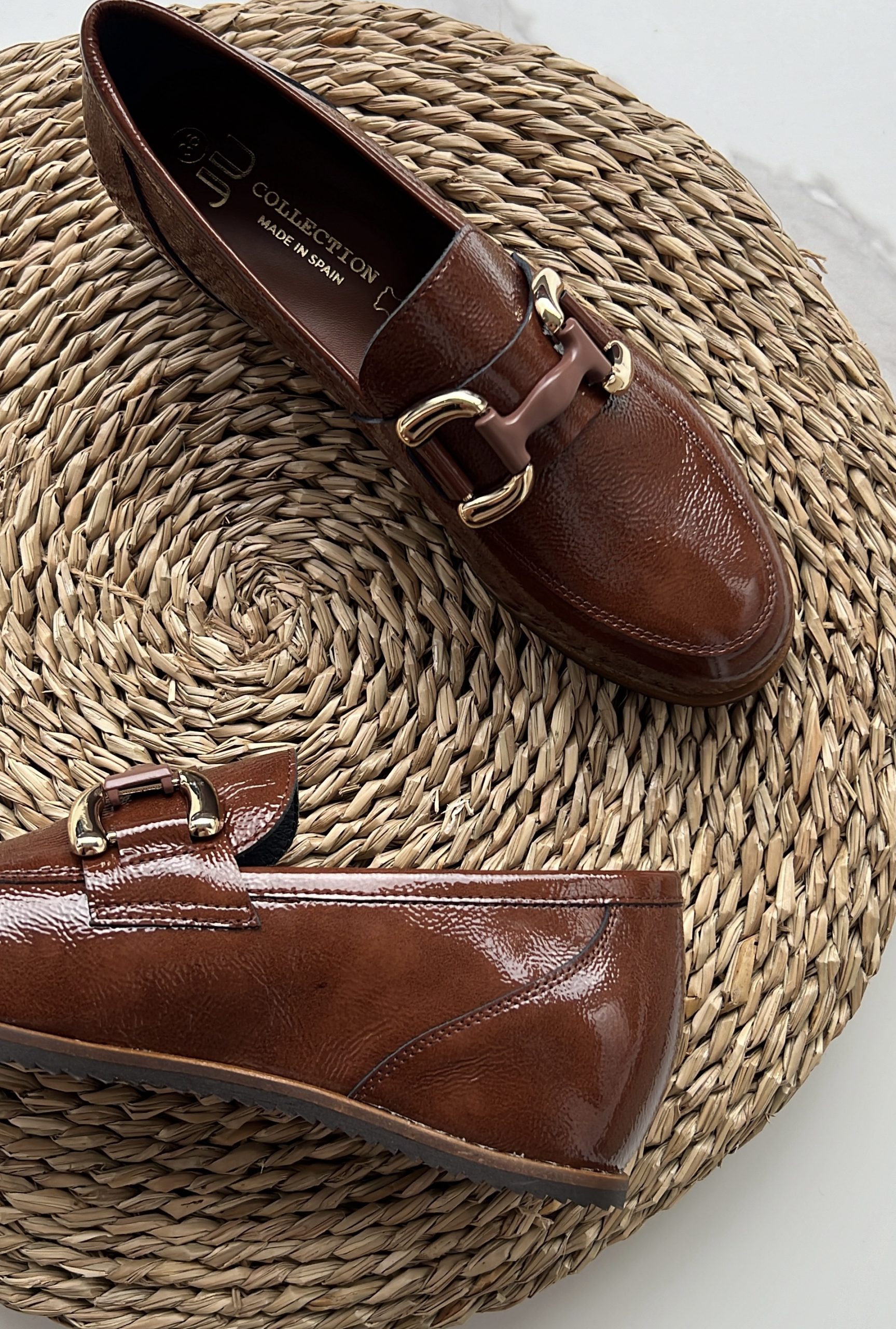 Ju Collection 30101 Mocasín rock cuña interna piel charol marrón.