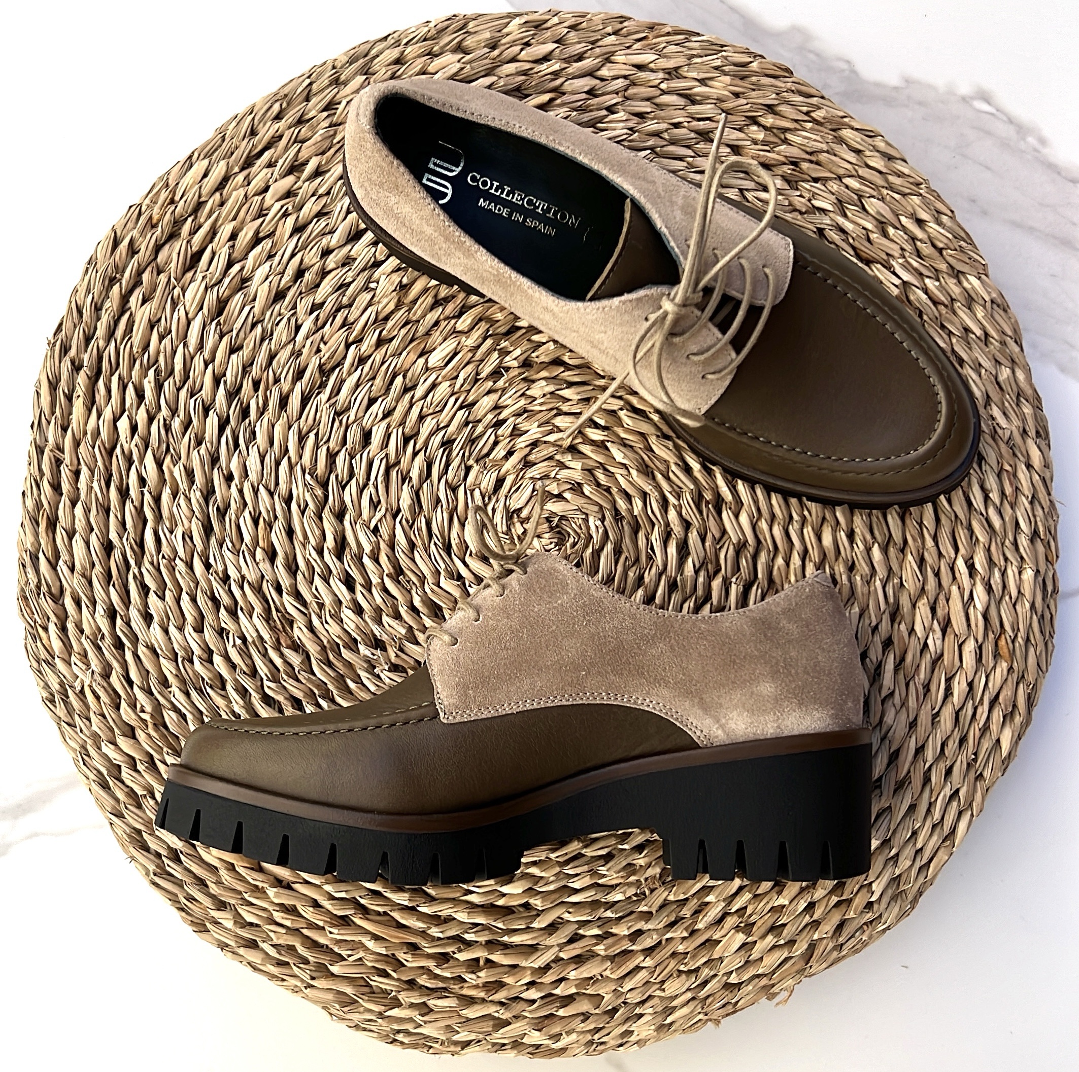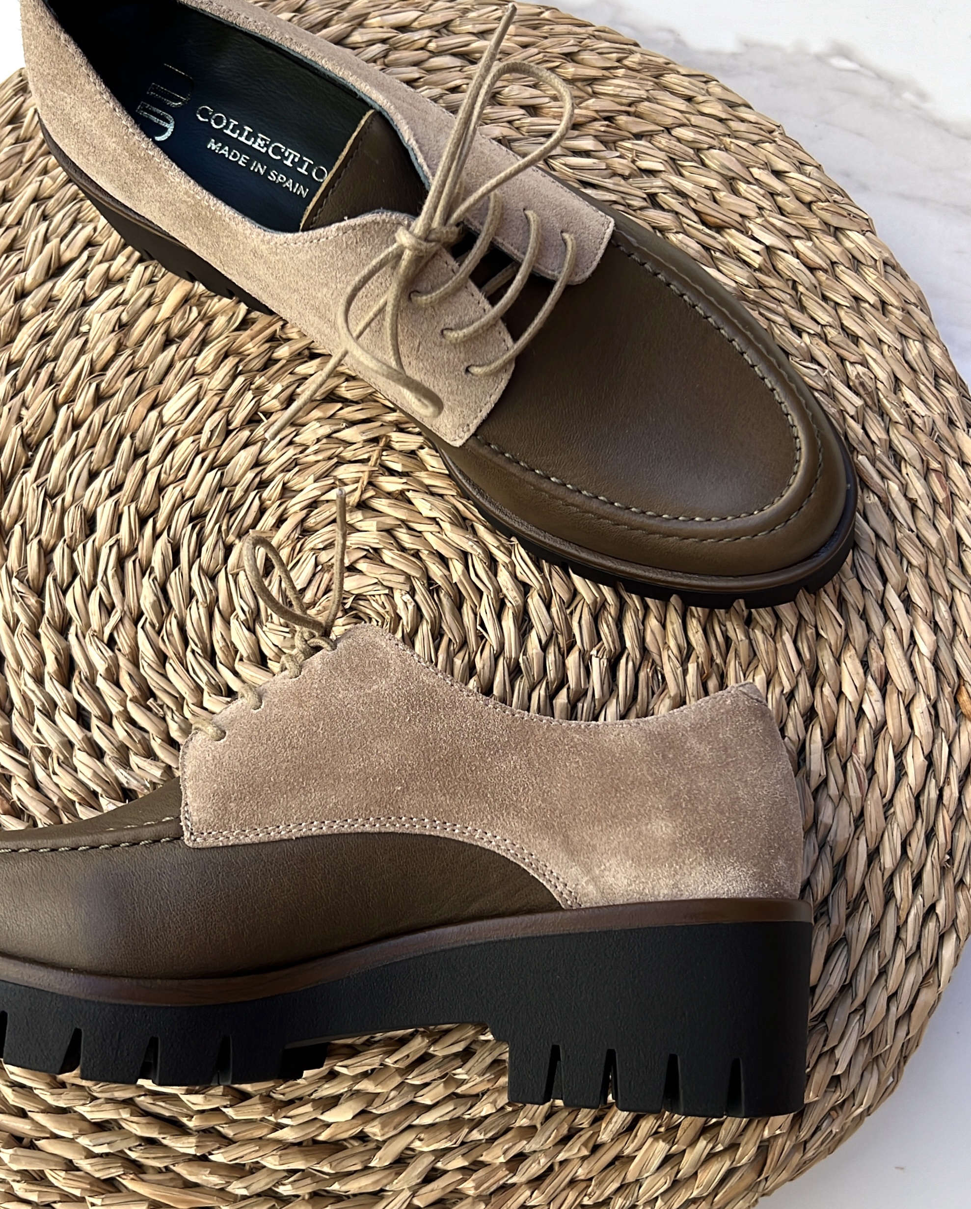 Ju Collection 31002 Zapato de cordón kaki y taupe.
