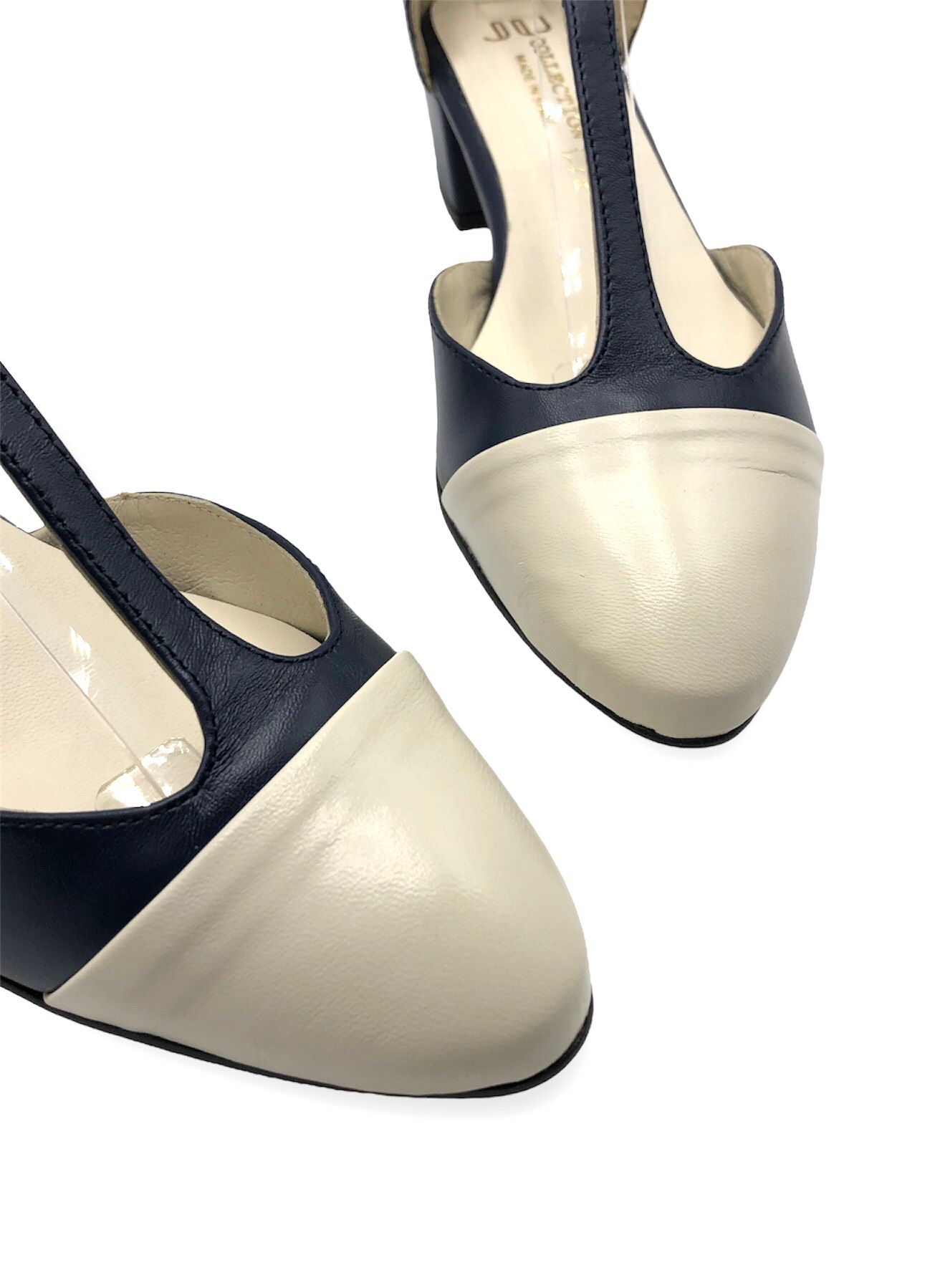 Ju Collection Olimpia tacón azúl marino y hielo.